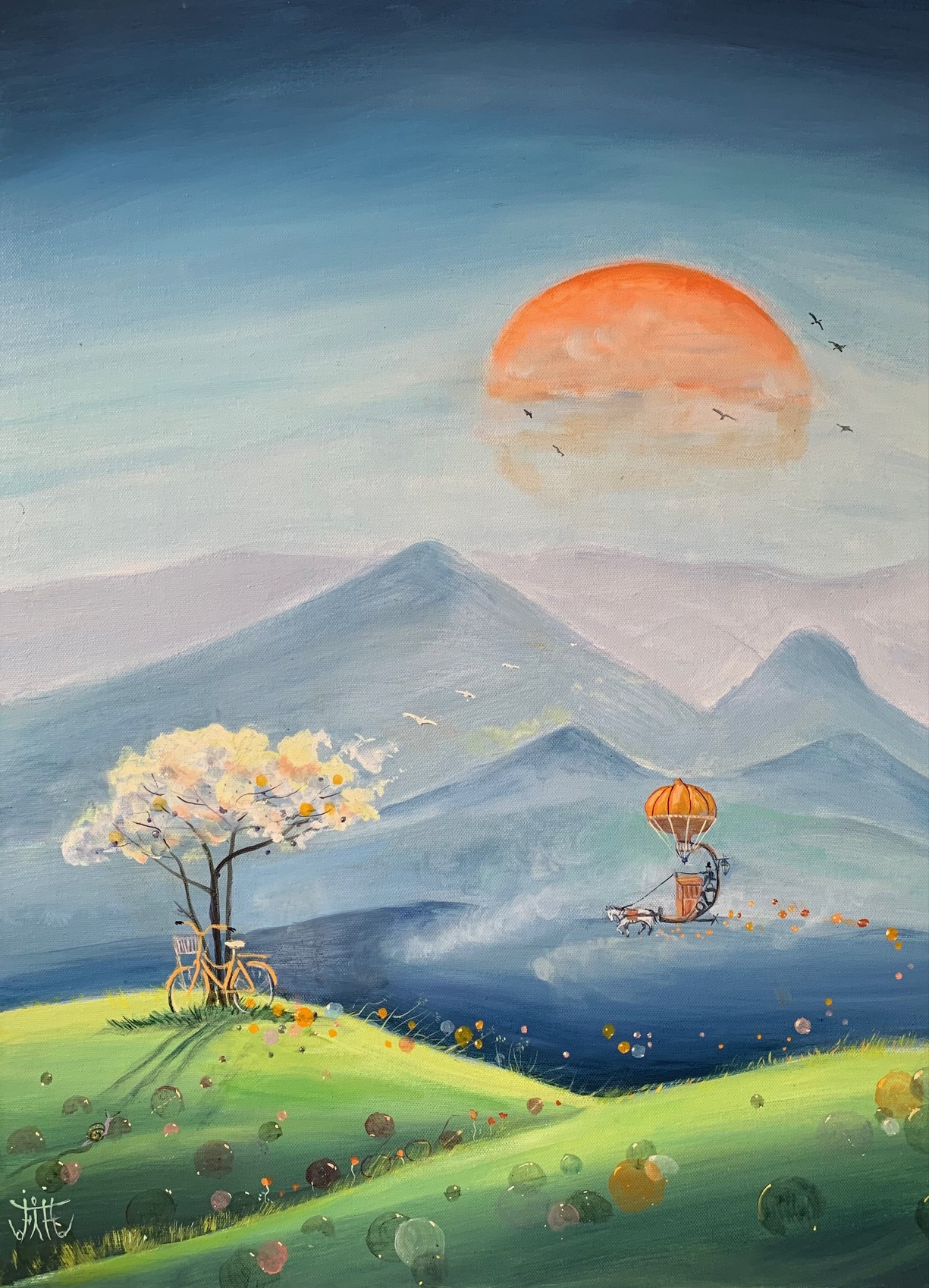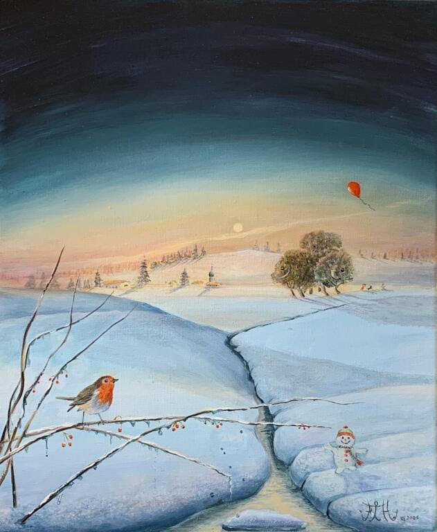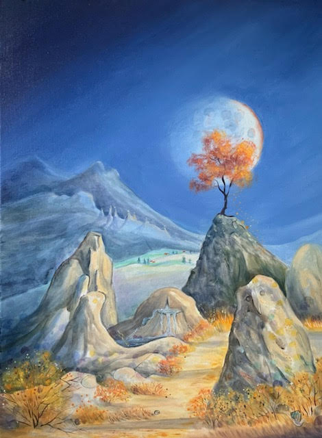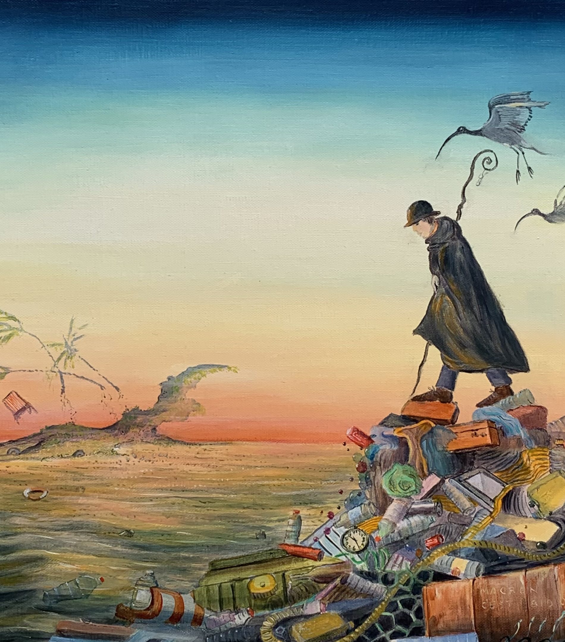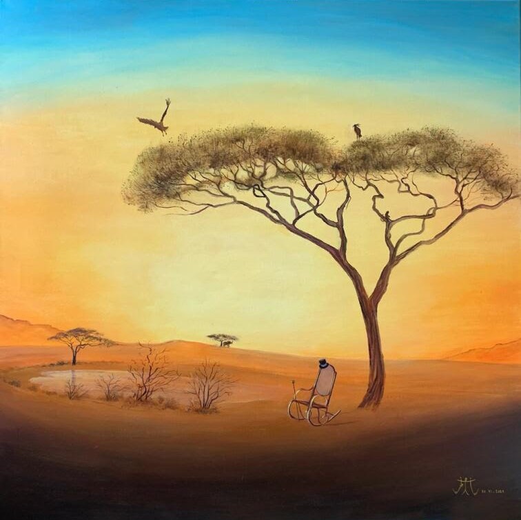 Ma peinture développe un univers fantastique, onirique, féérique et humoristique où se mêlent des éléments d’actualité et de voyage.